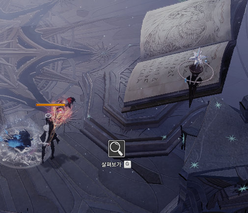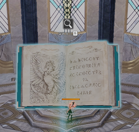 오른쪽 책옆에 빛나는 곳 살펴보기 후 퀘스트 완료