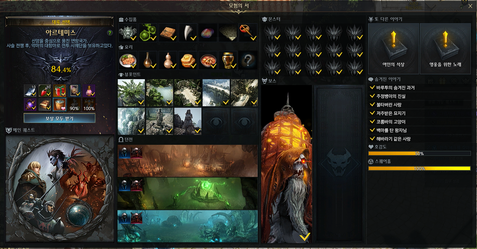 [로스트아크] 아르테미스 모험의 서 정리(79.6%) 본문