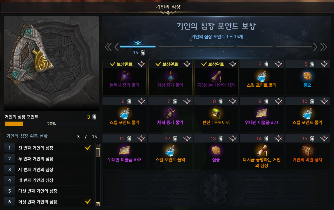 [로스트아크 시즌2] 거인의 심장 보상 및 획득처 정리 본문