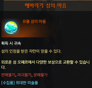 | 위대한 미술품 #3 | [수집품] 섬의 마음 보상 (섬의 마음 30개) |