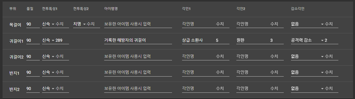 해당 부위 각인 옵션등 넣으신 후 검색하시면 됩니다.