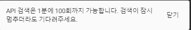 - 검색은 100개당 1분 걸립니다 / 174 개 검색시 약 1분 ~ 2분 소요
