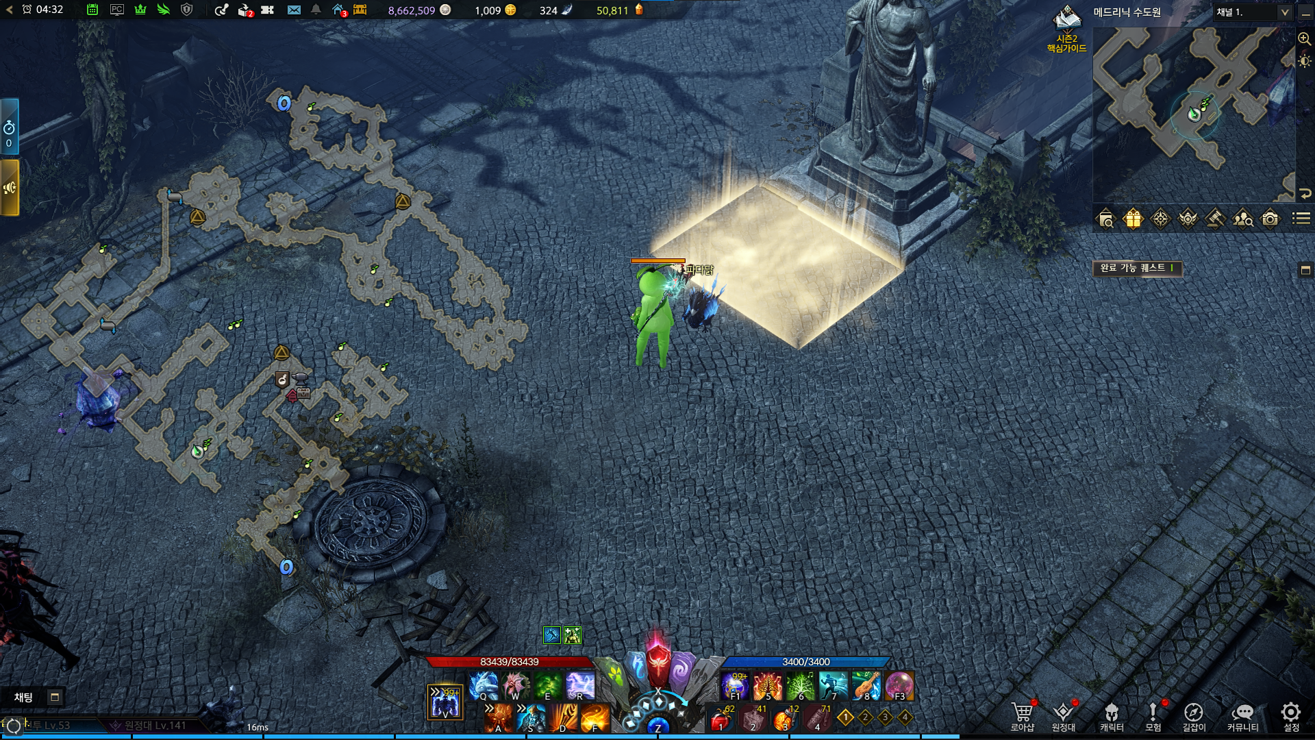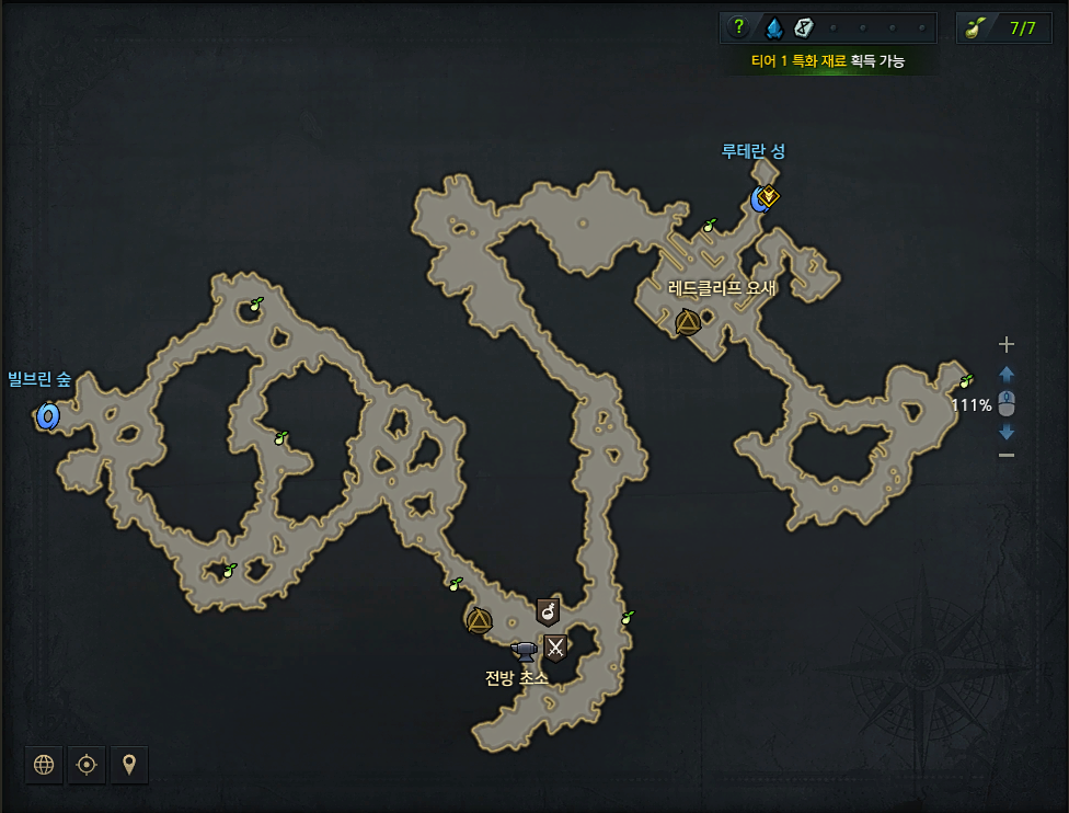 ▶빌브린 숲 (캐릭터가 위치한 곳에 필드보스 있습니다.)