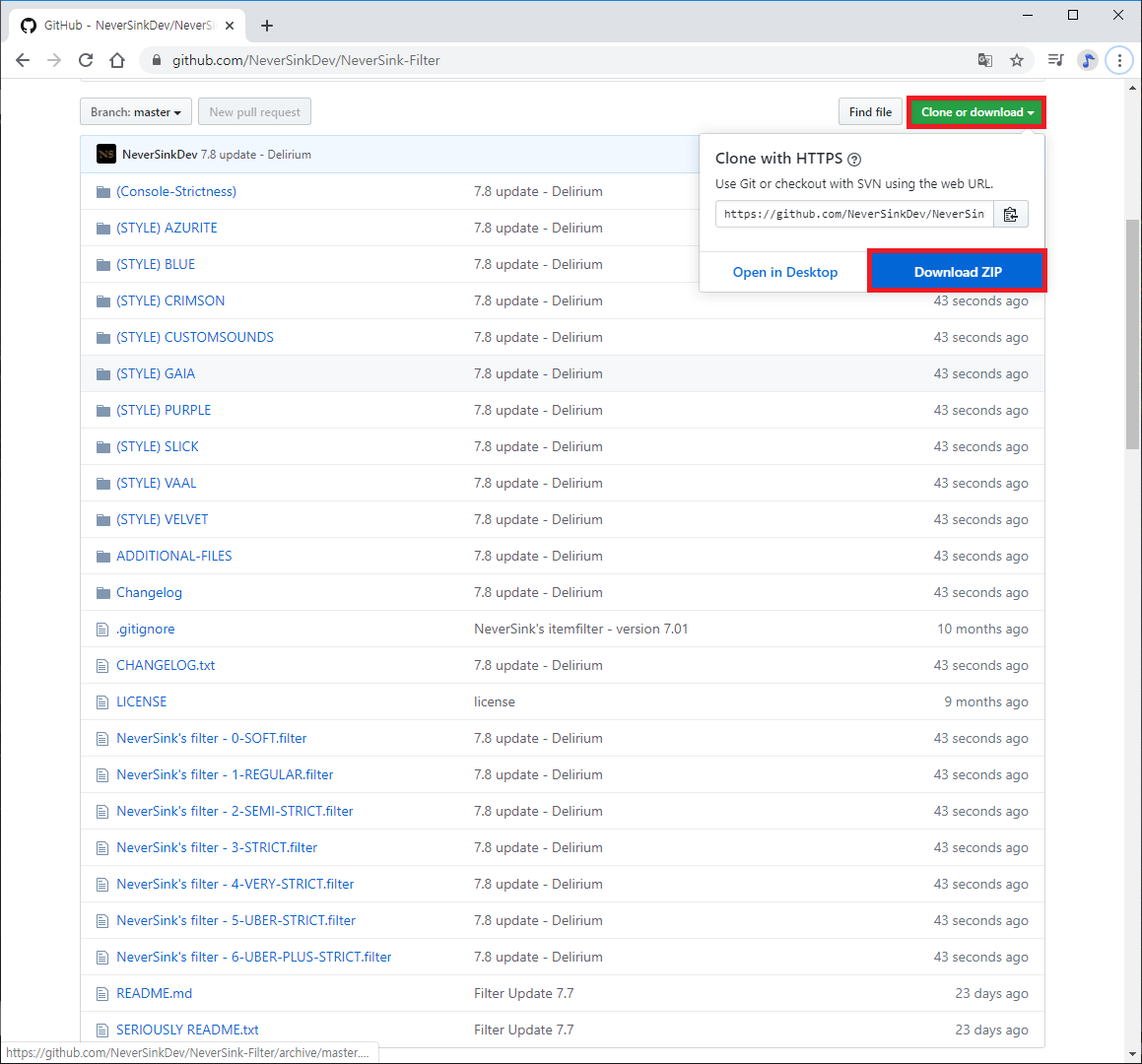 다운로드 주소 : https://github.com/NeverSinkDev/NeverSink-Filter