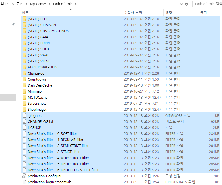 다운로드 주소 : https://github.com/NeverSinkDev/NeverSink-Filter