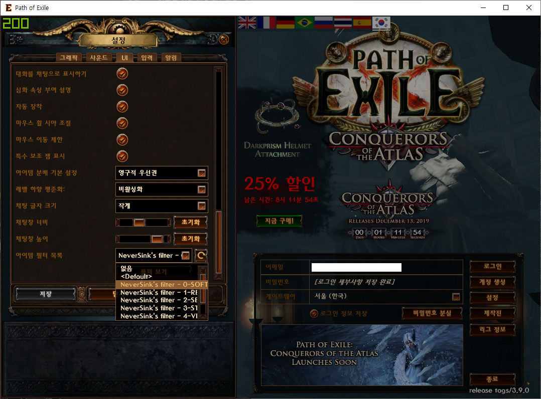 패스 오브 엑자일 3.9 네버싱크 필터 다운로드 및 설정 방법 본문