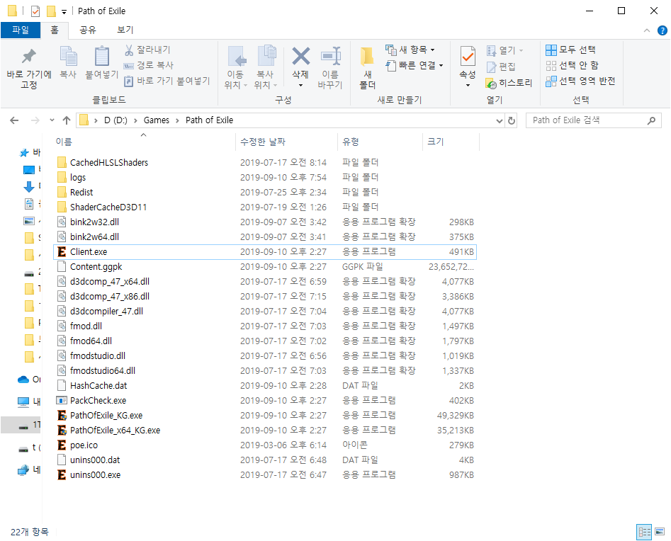 3. POE 폴더에서 Client.exe를 실행하여 캐릭터 생성.