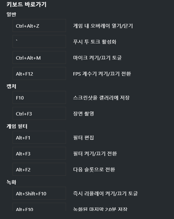 2) 단축키 설정은 게임 내 오버레이 활성화 > 설정 > 단축키 설정