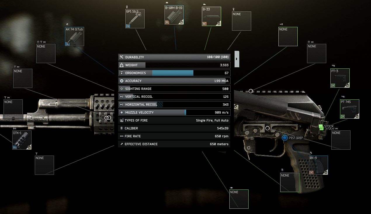 grip, PT-3 stock, dust cover, and muzzle brake by Zenit