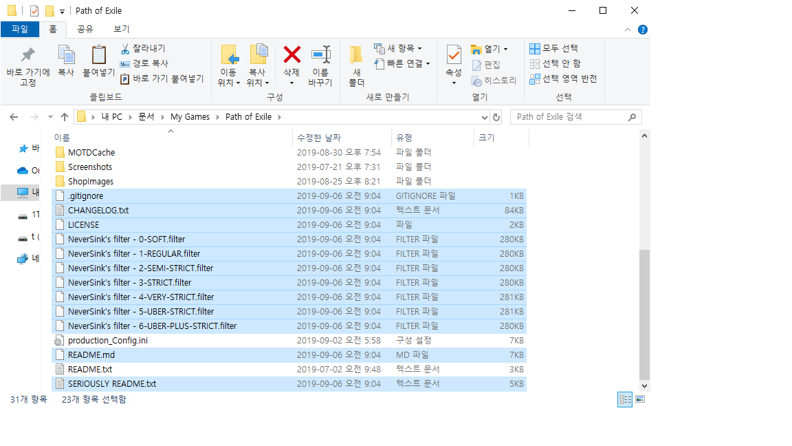 다운로드 주소 : https://github.com/NeverSinkDev/NeverSink-Filter